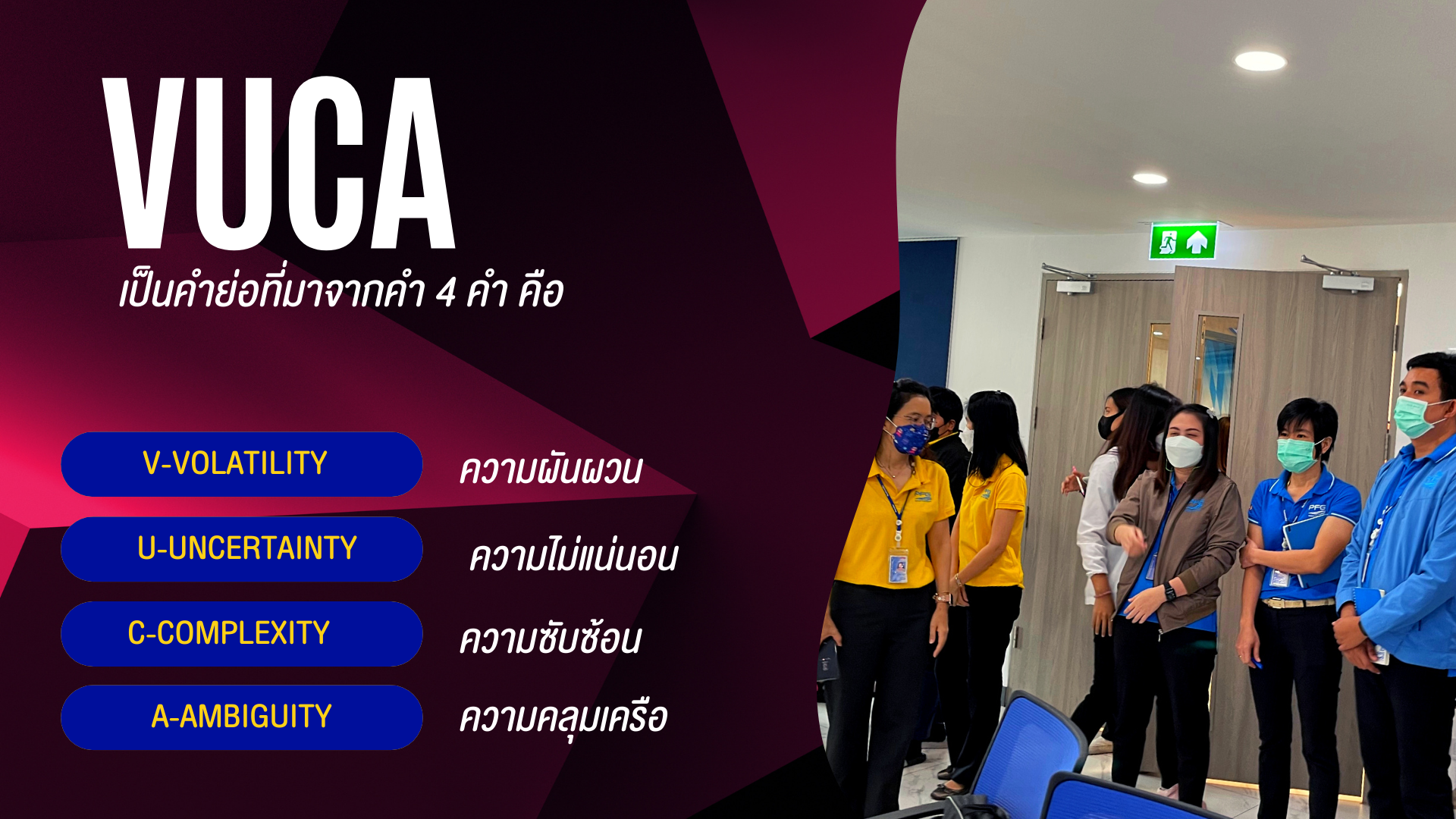 เมื่อวันที่ 27 มิถุนายน 2565 ที่ผ่านมาบริษัท พัทยาฟู้ด ได้จัดคลาสให้ความรู้ เทคนิคการรับมือจากสถานการณ์ VUCA WORLD