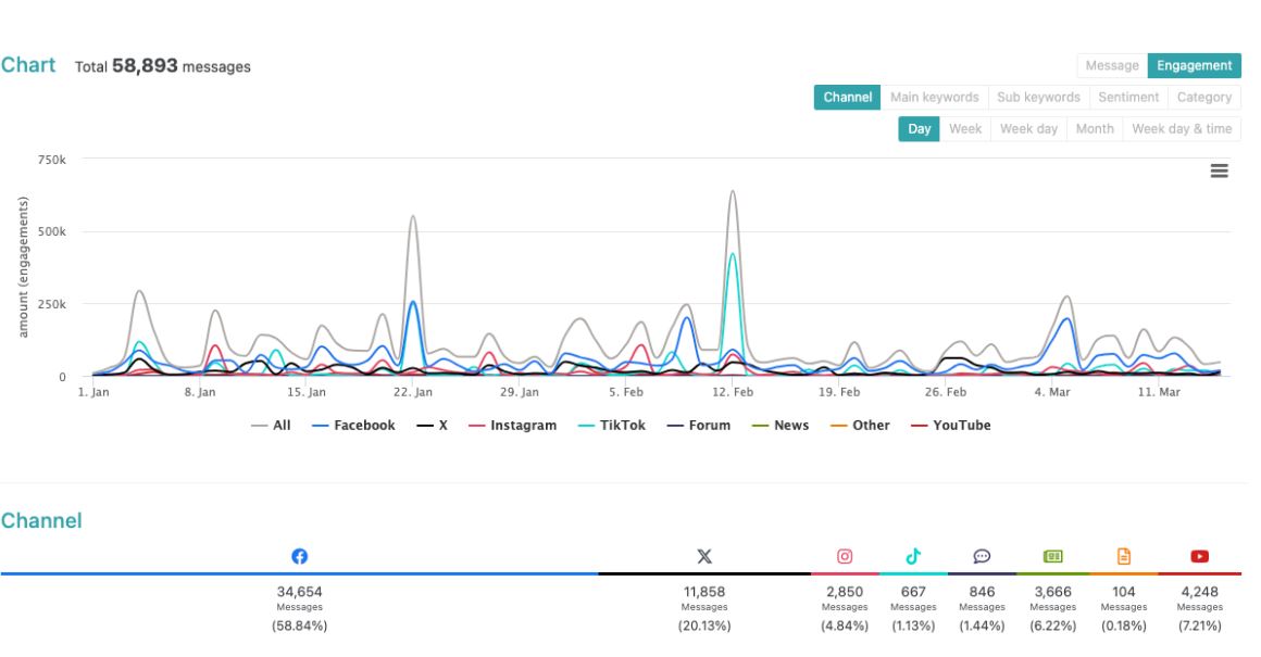 Research ได้ทำการเก็บข้อมูลที่เกี่ยวข้องกับ “Soft Power” สูงถึง 8,182,461 เอ็นเกจเมนต์ จาก 58,893 ข้อความ ผ่านเครื่องมือ Zocial