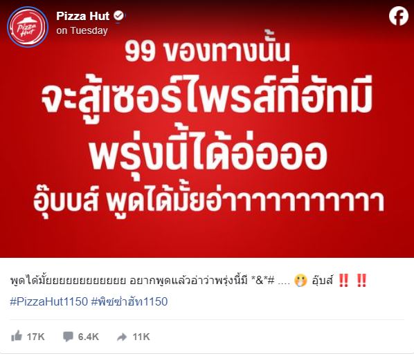 Pizza Company โกยคู่แข่งได้อย่างไร ถึงกับโพสต์ผ่านแฟนเพจตัวในทำนองที่ว่า